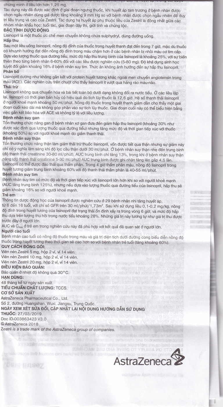 Công dụng của Thuốc Zestril 5mg