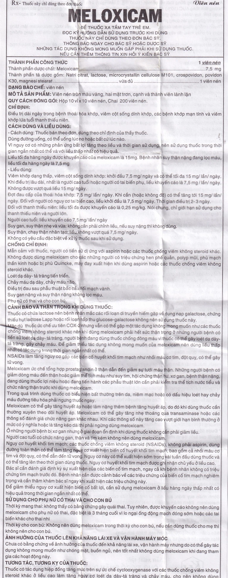 Thành phần của Viên nén Meloxicam 7.5mg