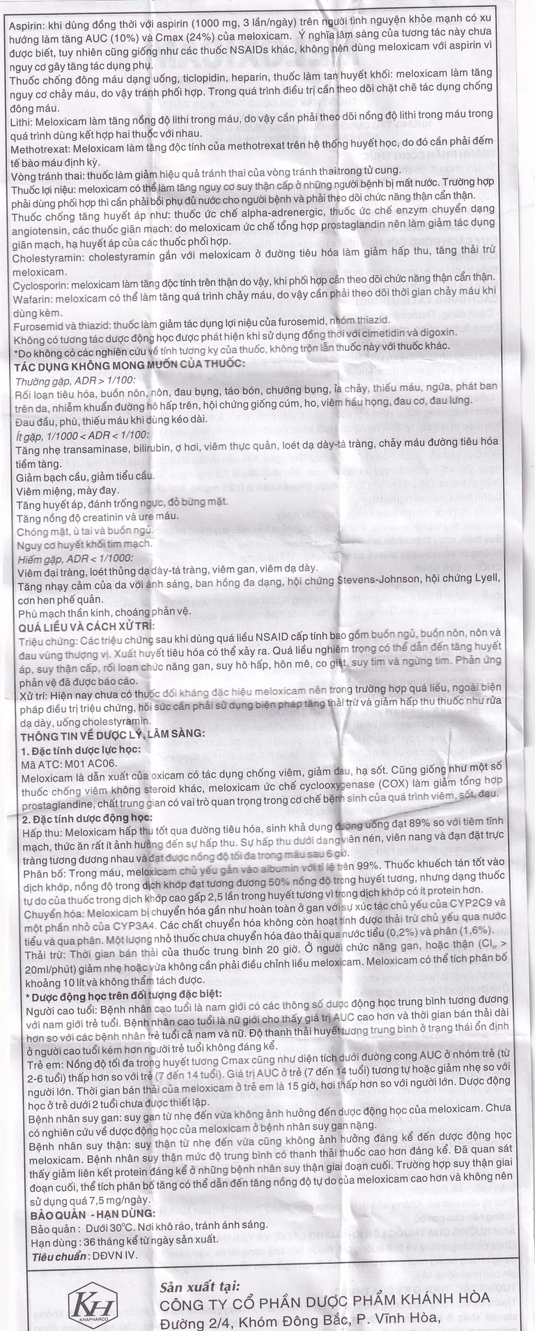 Khi dùng đồng thời với aspirin (1000 mg, 3 lần/ngày) trên người tình nguyện khỏe mạnh có xu hướng làm tăng AUC (10%) và Cmax (24%) của meloxicam. Ý nghĩa lâm sàng của tương tác này chưa được biết. Tuy nhiên, cũng giống như các thuốc NSAIDs khác, không nên dùng meloxicam với aspirin vì nguy cơ gây tăng tác dụng phụ.