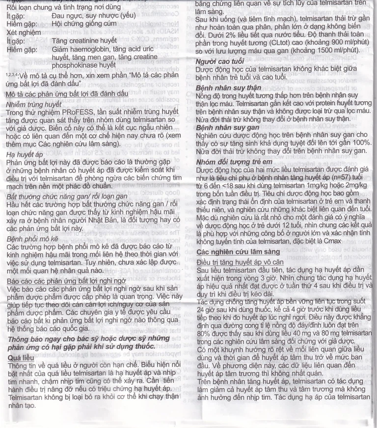 Với bệnh nhân tăng huyết áp nặng điều trị telmisartan với liều tới 160 mg dùng đơn lẻ và dùng phối hợp với hydrochlorothiazide 12,5 – 25 mg/ngày đều dung nạp tốt và hiệu quả.