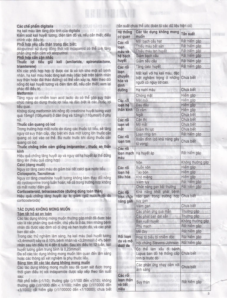 Indapamide không cho thấy độc tính ở liều tới 40mg, nghĩa là 27 lần liều điều trị.