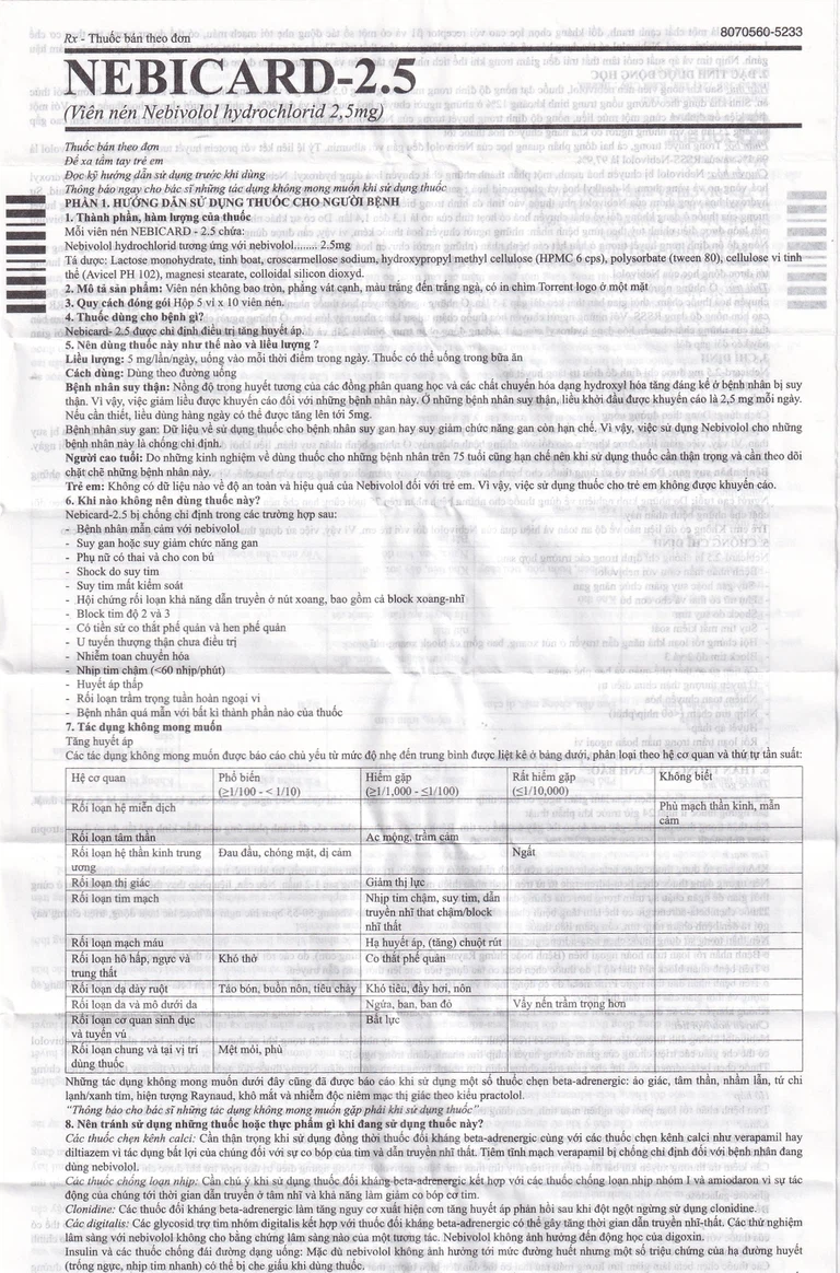 Thuốc Nebicard 2.5mg được chỉ định để điều trị tăng huyết áp.