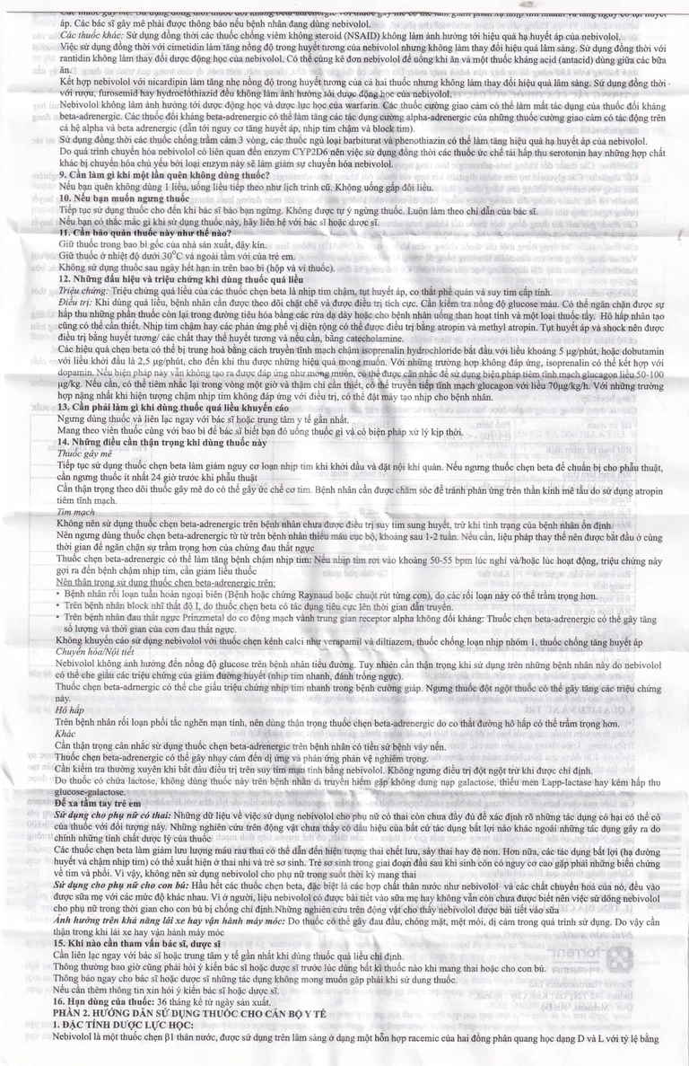 Sử dụng đồng thời các thuốc chống viêm không steroid (NSAID) không làm ảnh hưởng tới hiệu quả hạ huyết áp của nebivolol.