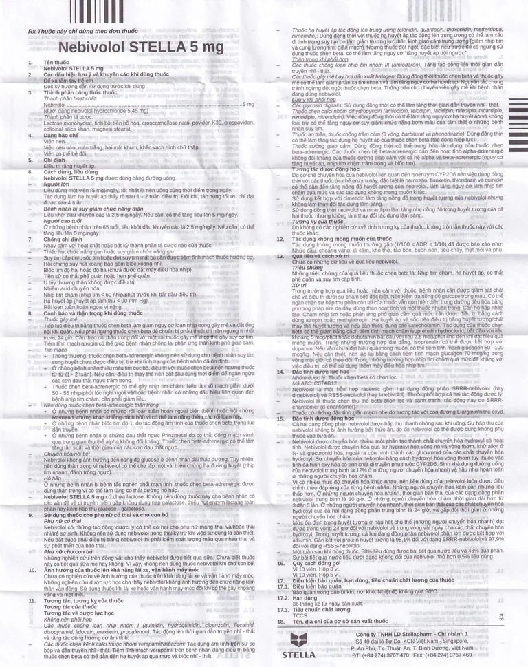 Nebivolol STELLA 5 mg có chứa lactose. Không nên dùng thuốc này cho bệnh nhân có các vấn đề về di truyền hiếm gặp không dung nạp galactose, thiếu hụt enzym lactase toàn phần hay kém hấp thu glucose – galactose.