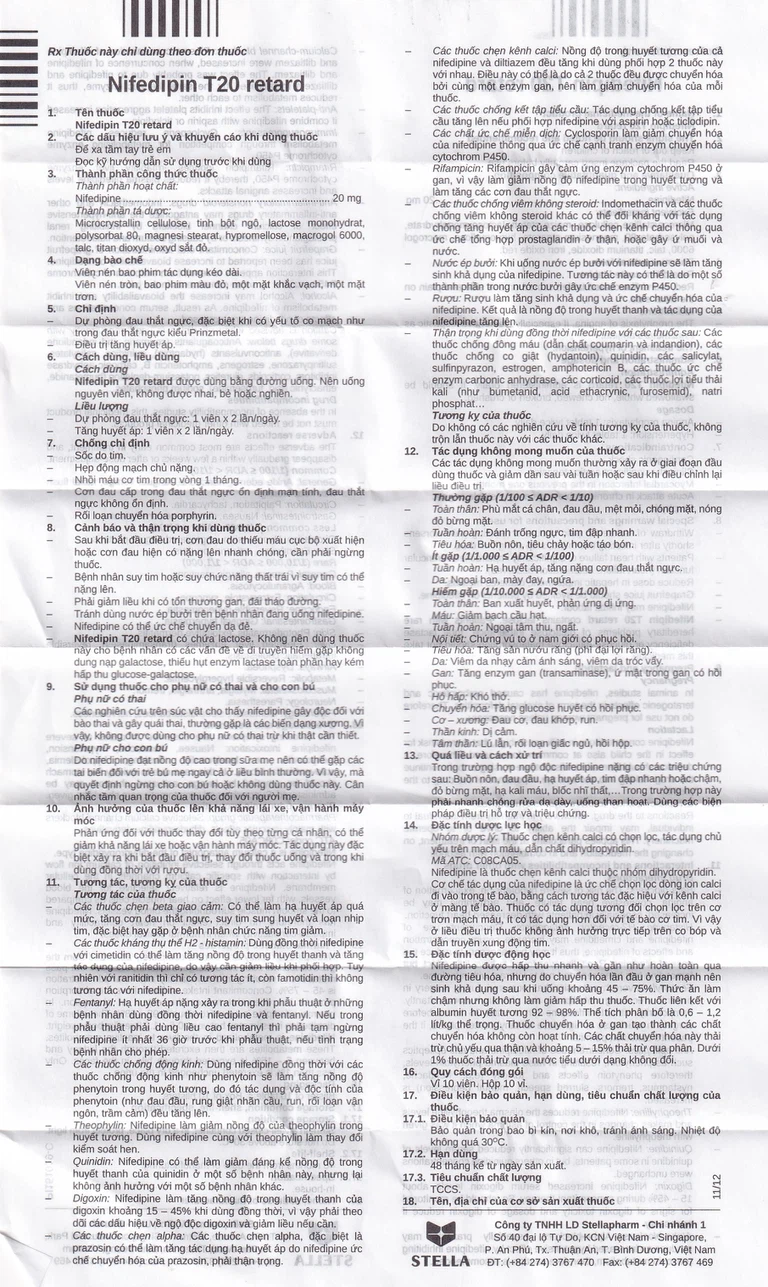 Công dụng của Viên nén Nifedipin T20 retard