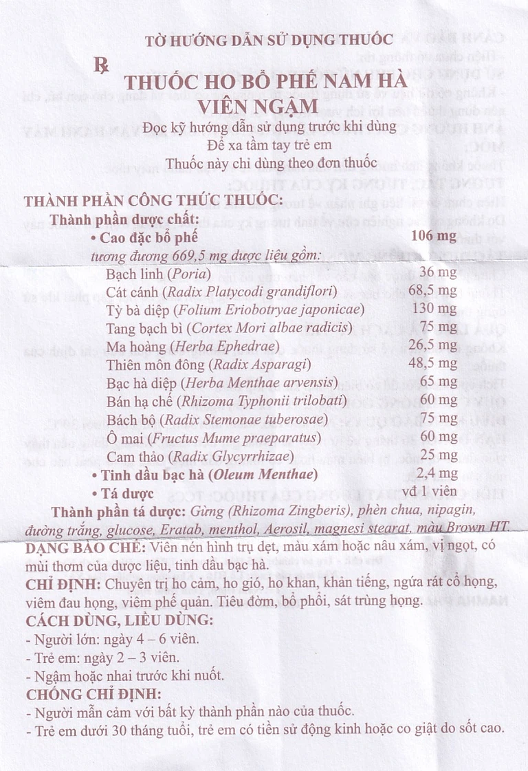 Cách dùng Viên ngậm ho Bổ Phế Nam Hà