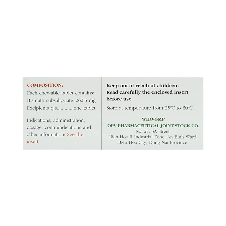 Bismuth subsalicylat có tác dụng kháng khuẩn, tác động trực tiếp bảo vệ màng nhày và có tính trung hòa acid yếu.