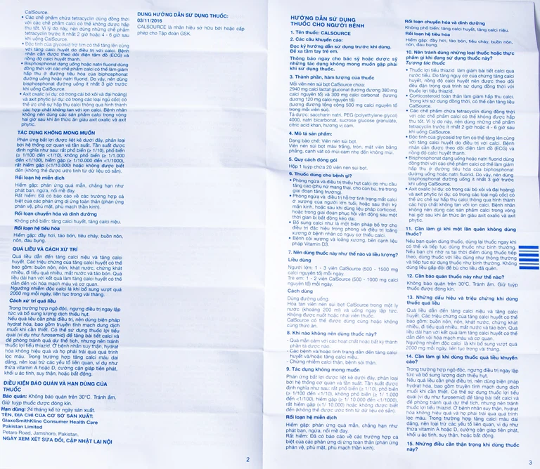 - Natri: Mỗi viên Calsource chứa 275mg natri. Nên cân nhắc điều này khi sử dụng cho các bệnh nhân có chế độ ăn uống phải kiểm soát natri.