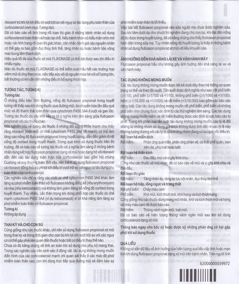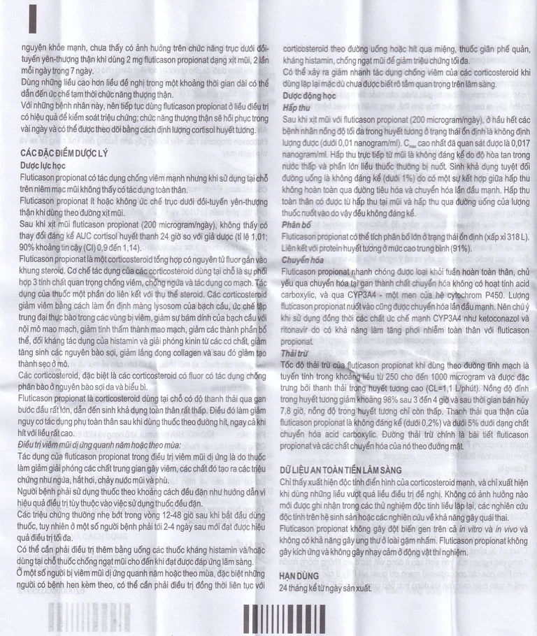 Fluticason propionat có tác dụng chống viêm mạnh nhưng khi sử dụng tại chỗ trên niêm mạc mũi không thấy có tác dụng toàn thân.